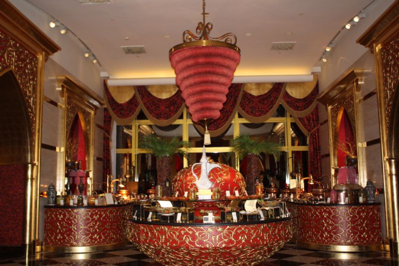 Burj Al Arab, 9 restoranıyla dünya mutfağının yanı sıra Arap mutfağının zengin seçeneklerini misafirlerine sunuyor.