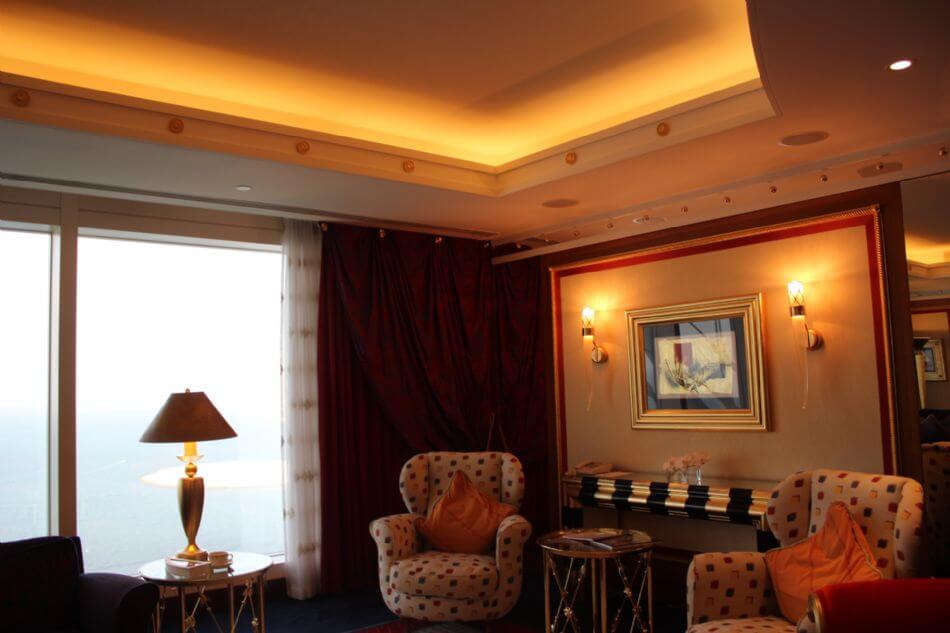 Burj Al Arab’ın 202 suitinin hepsi birbirinde farklı güzelliğe sahip. En küçük suiti 169 metrekare, en büyük suiti ise 780 metrekare. Suitlerin iç tasarımları, atmosferi oldukça iddialı.
